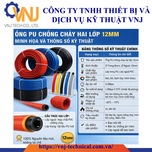 - Tên sản phẩm: Ống PU chống cháy hai lớp 8mm (100m/cuộn)